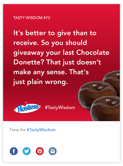 By extending the core brand attitude of “surprise and delight,” Hostess and DMH re-energized the brand voice across multiple networks to promote interaction and brand affinity.