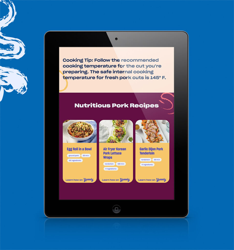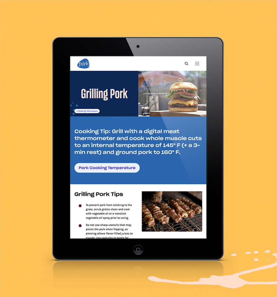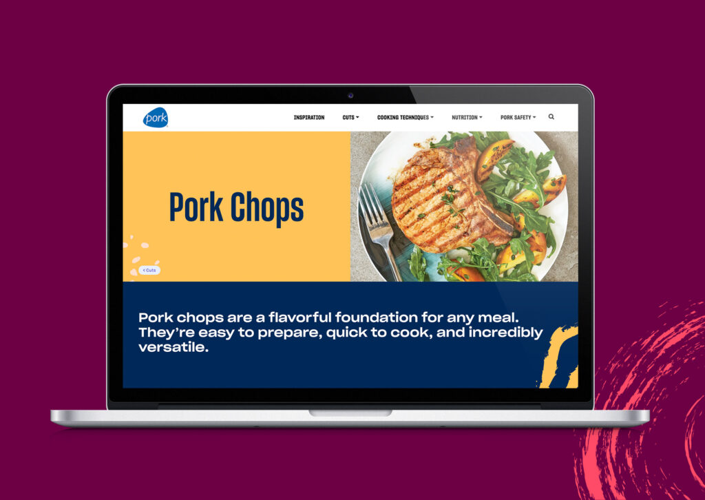 Take your chicken wings and burger patties elsewhere—let’s talk about the misunderstood meat that is pork. We created the National Pork Board’s consumer-facing website all about, you guessed it, tender, tasty pork. They brought two goals to the table: Change the perception around pork and, ultimately, create demand for it. So, we gave Pork.org a fun, fresh look that educates, celebrates, and advocates for all things pork. P.S. check out the 404 page. It’s our favorite cut of all.